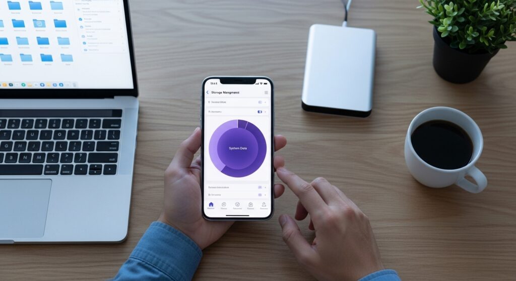 عندما ترى أن التخزين ممتلئ بسبب Other أو بيانات النظام، فالمشكلة لا تكون عادة من الصور أو الفيديوهات الظاهرة لك فقط. هذا النوع من الامتلاء غالبًا يأتي من ملفات مؤقتة، أو بيانات تطبيقات متراكمة، أو تنزيلات علقت أو لم تُحذف كما يجب، أو فهارس وملفات نظامية كبرت أكثر من المتوقع بعد تحديثات أو استخدام طويل. لذلك لا تبدأ بحذف صورك أو تطبيقاتك الرئيسية عشوائيًا قبل أن تعرف أين تتضخم المساحة فعليًا. البداية الصحيحة هنا هي أن تفرق بين تخزين ممتلئ بسبب ملفاتك أنت وبين تخزين ممتلئ لأن Other أو بيانات النظام تضخمت.