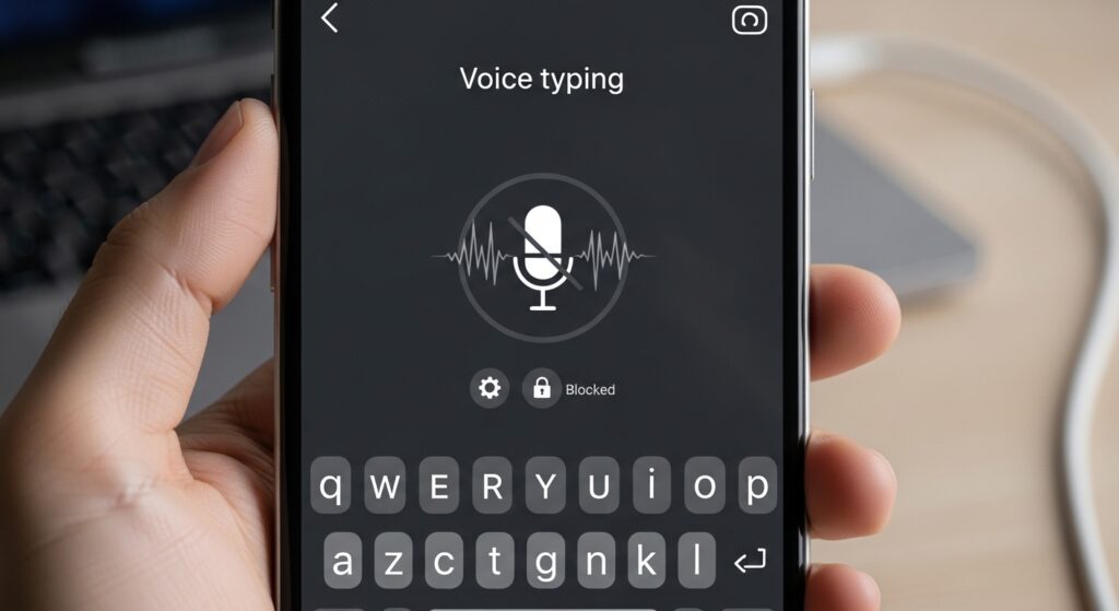 - إذا كان التسجيل يخرج طبيعيًا، فالميكروفون غالبًا سليم، والمشكلة أقرب إلى لوحة المفاتيح أو إذنها أو خدمة الكتابة بالصوت.